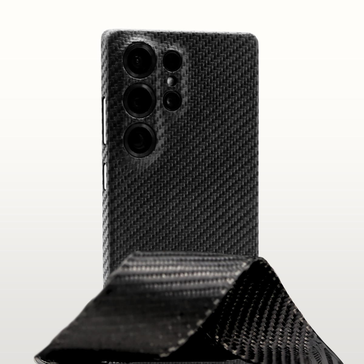 Nuestras fundas están hechas de carbono 100% real. Se trata de millones de diminutas fibras de carbono que, cuando se combinan, son increíblemente fuertes y, al mismo tiempo, muy ligeras. El carbono se utiliza, entre otras cosas, en aviones, motos de carreras y en la Fórmula 1.
